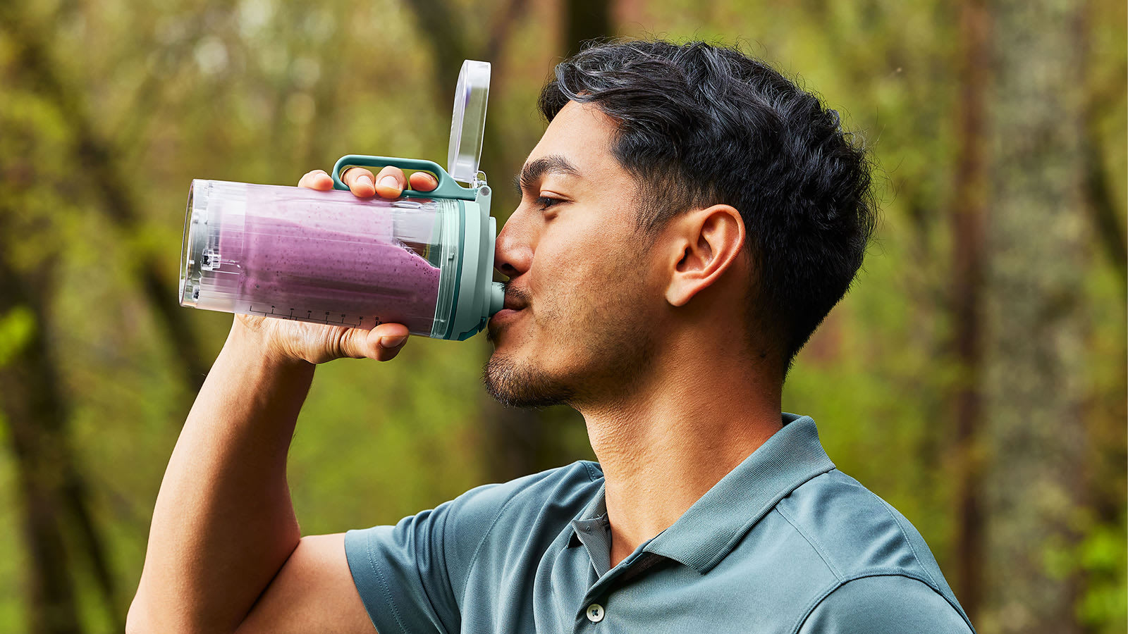 Afneembare blendbeker van 570 ml* met een lekbestendig deksel: van voedzame smoothies en eiwitshakes tot marinades en sauzen, je maakt in een mum van tijd heerlijke recepten. En als je klaar bent, draai je met gemak de beker van de motorbasis en neem je je eigen creaties overal mee naartoe. Het BPA-vrije, lekbestendige deksel voorkomt ongelukjes als je de beker met je mee neemt. Hij heeft zelfs een handvat en mondstuk zodat je op elk moment onderweg eenvoudig kunt drinken en schenken.